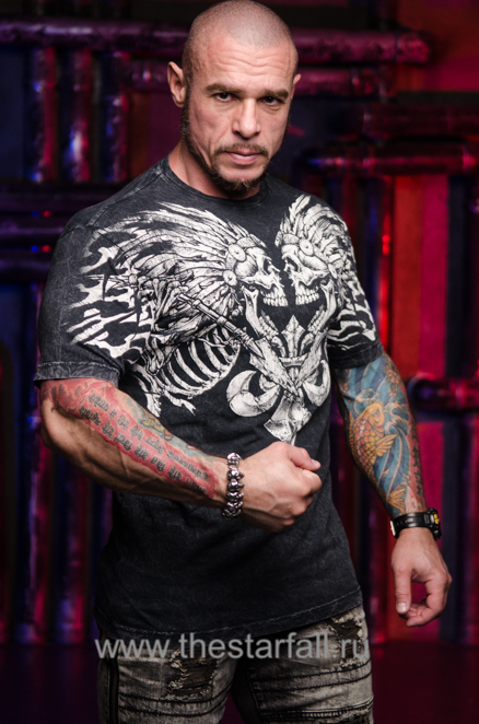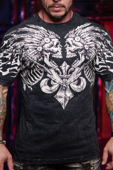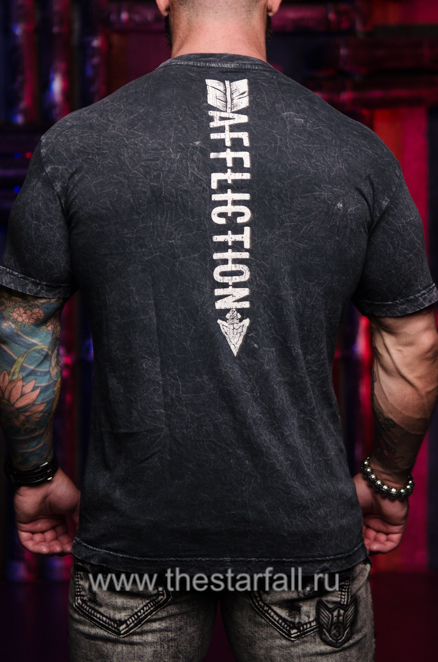 Мужские интересные футболки APACHE PRIDE Affliction от американского производителя одежды Аффликшн с необычными принтами черепов.