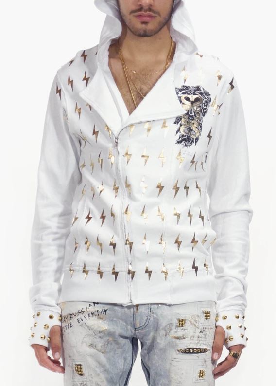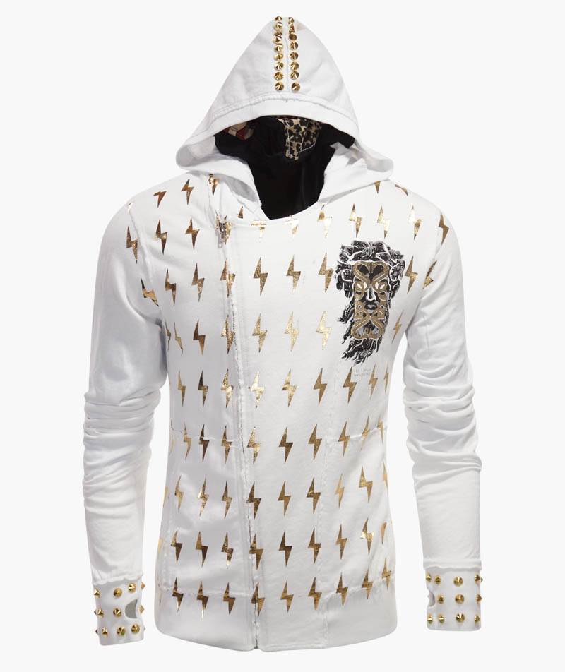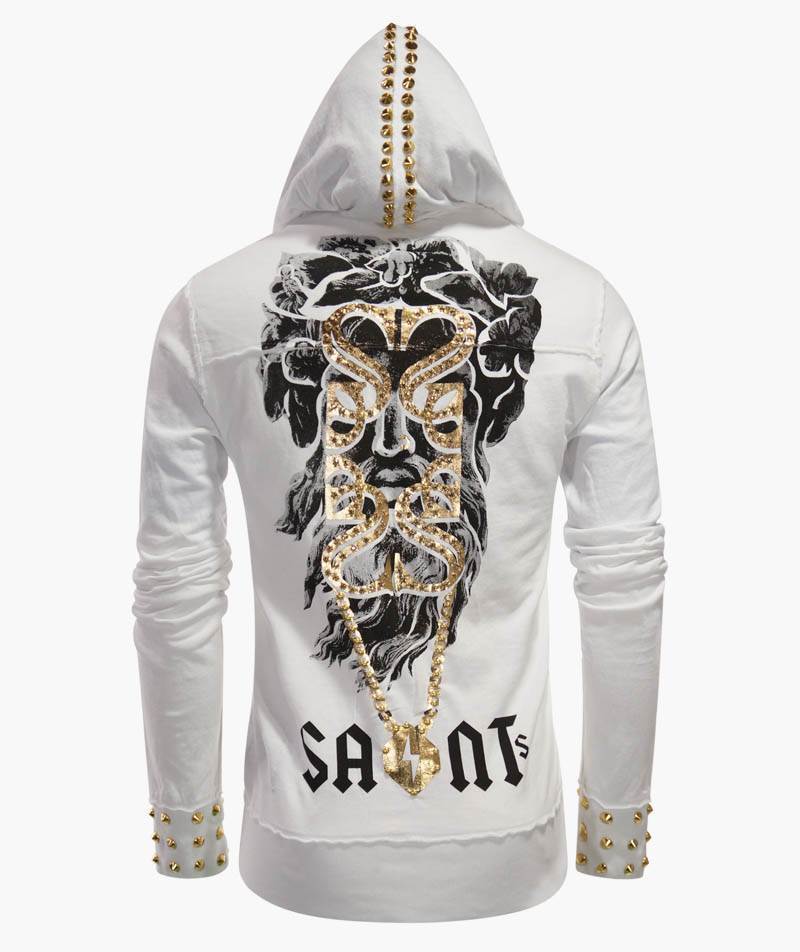Худи LIGHTNING ZEUS HOODY TS2913 The Saints Sinphony с изображением Зевса - повелителя грома и молний. Сделано из мягкого, плотного хлопка. Приталенный крой. Удлиненные рукава с отверстием для большого пальца. Дополнительно декорировано золоченой фольгой и металлическими клепками.