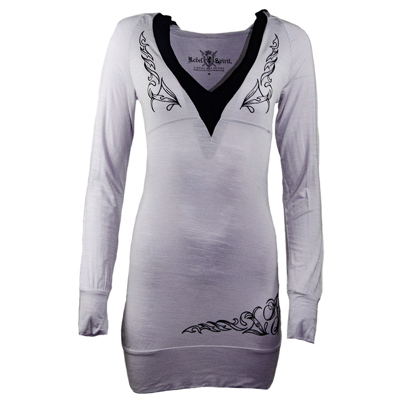 Укороченное платье GDS120657 Rebel Spirit с капюшоном. Длинный рукав. Элегантный принт в форме королевской лилии. Купить стильное короткое летнее платье в магазине The Starfall.